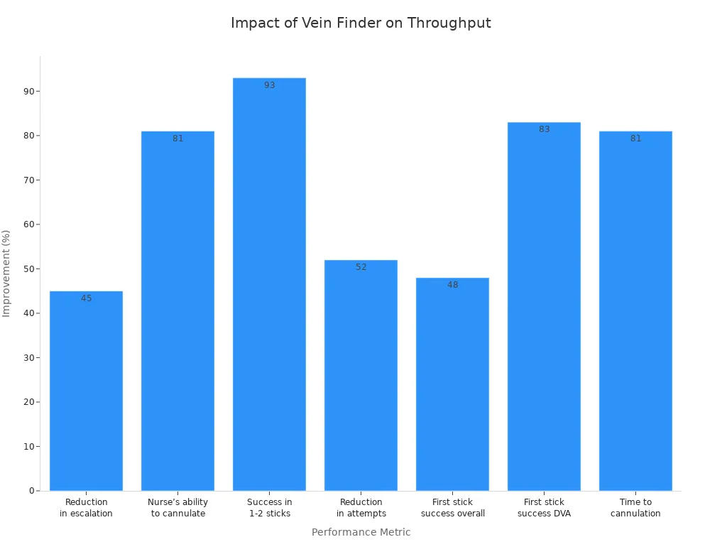 ترغب في أن تسير كل عملية بسلاسة وأمان. باستخدام جهاز تحديد الأوردة في المستشفى، تقلل من خطر حدوث مضاعفات مثل الورم الدموي والتسرب. كما تقل محاولات الحقن الفاشلة ويقل تلف الأنسجة. يستفيد المرضى من عدد أقل من وخزات الإبر وتجربة أكثر إيجابية. يوضح الجدول التالي كيف تُحسّن أجهزة تحديد الأوردة السلامة ورضا المرضى:
